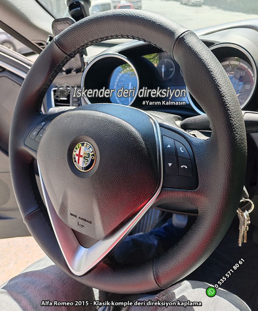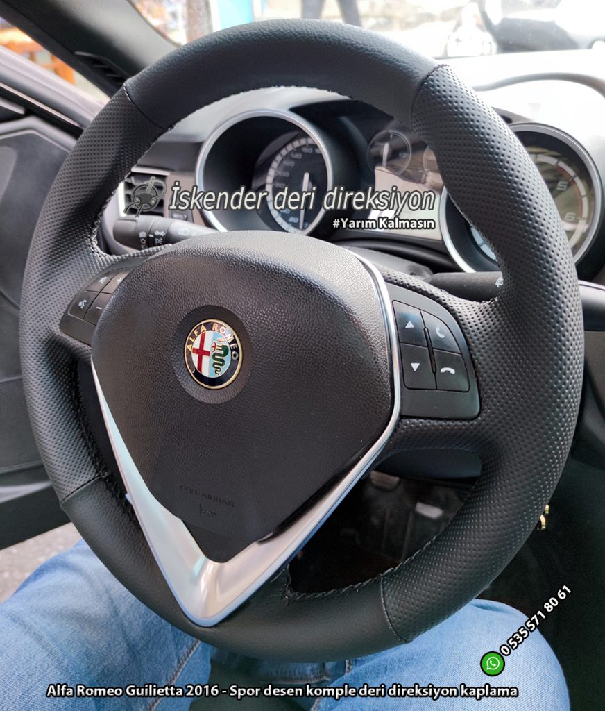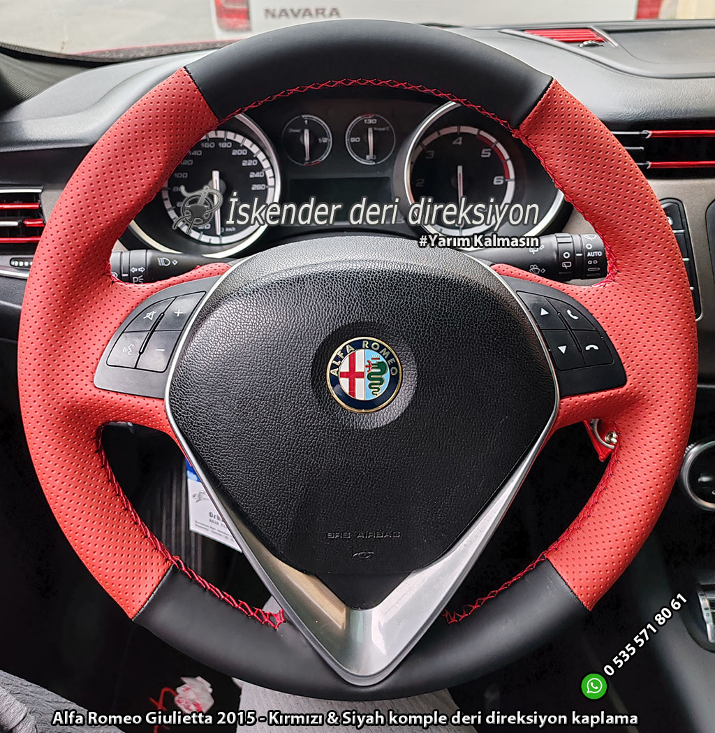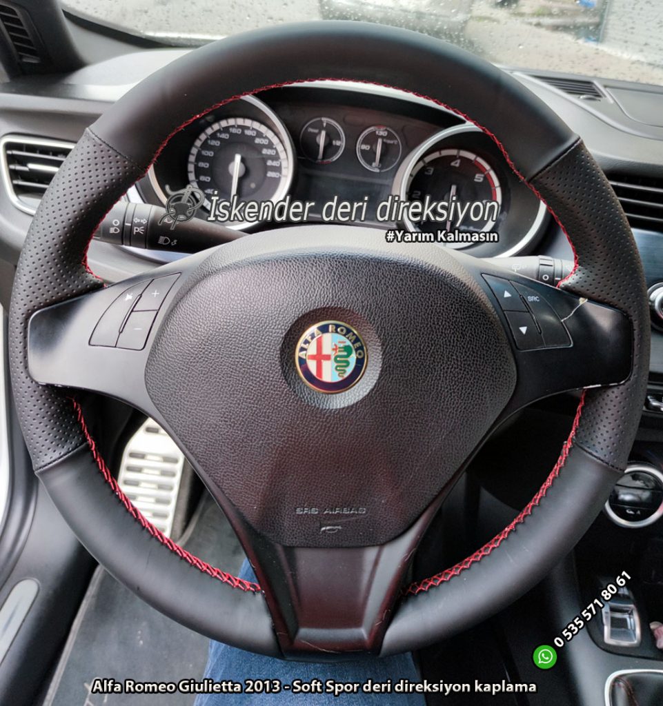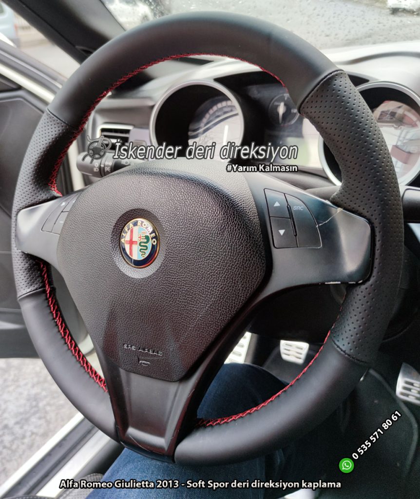 Alfa Romeo Giulietta deri direksiyon kılıfı direksiyonlarını kenarlar kollar dahil kaplayan kılıfımız mevcuttur. Orjinal kalıp araca özel deri direksiyon kılıfı satıyoruz. Whatsapp hattımız üzerinden sipariş verebilirsiniz.