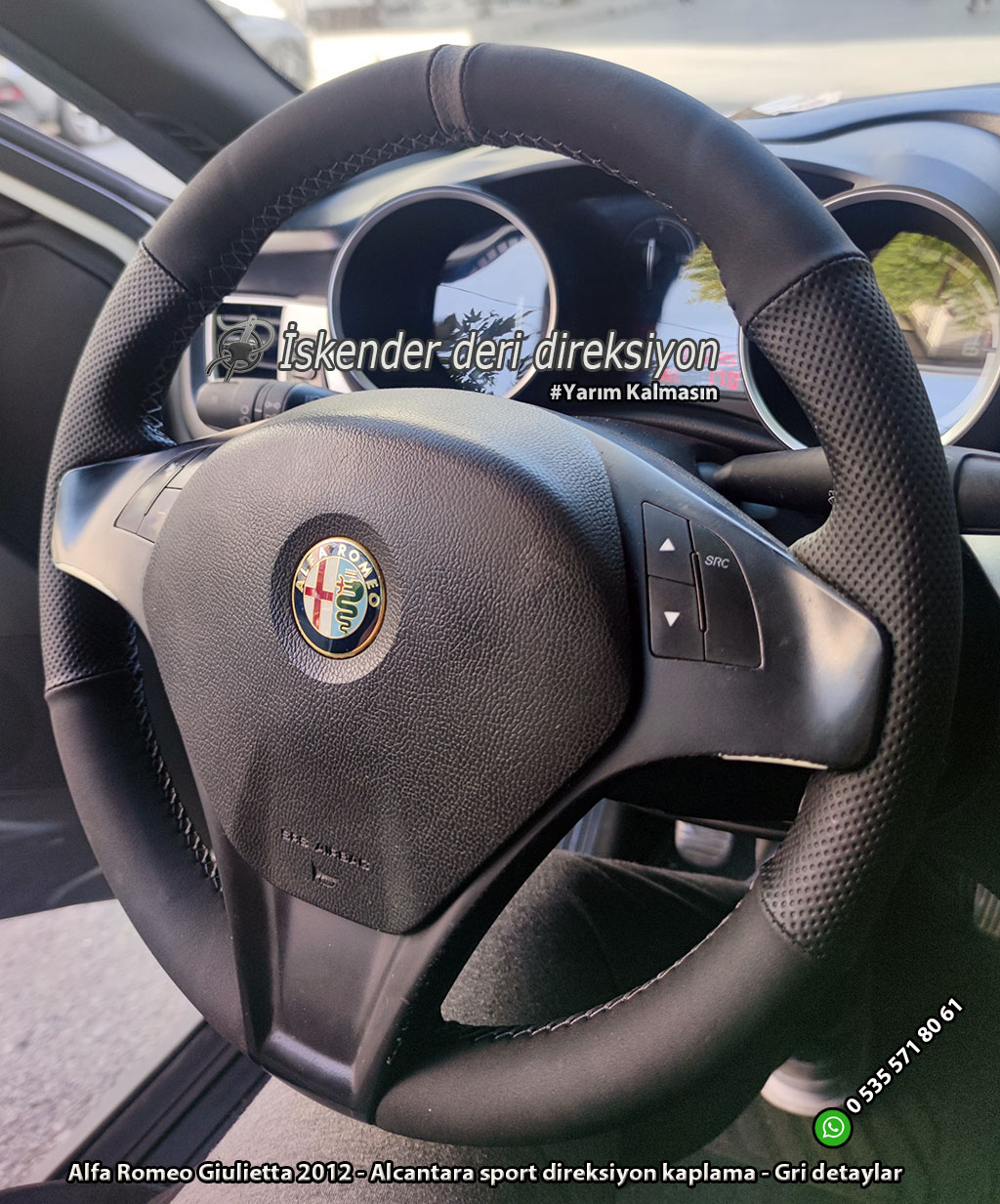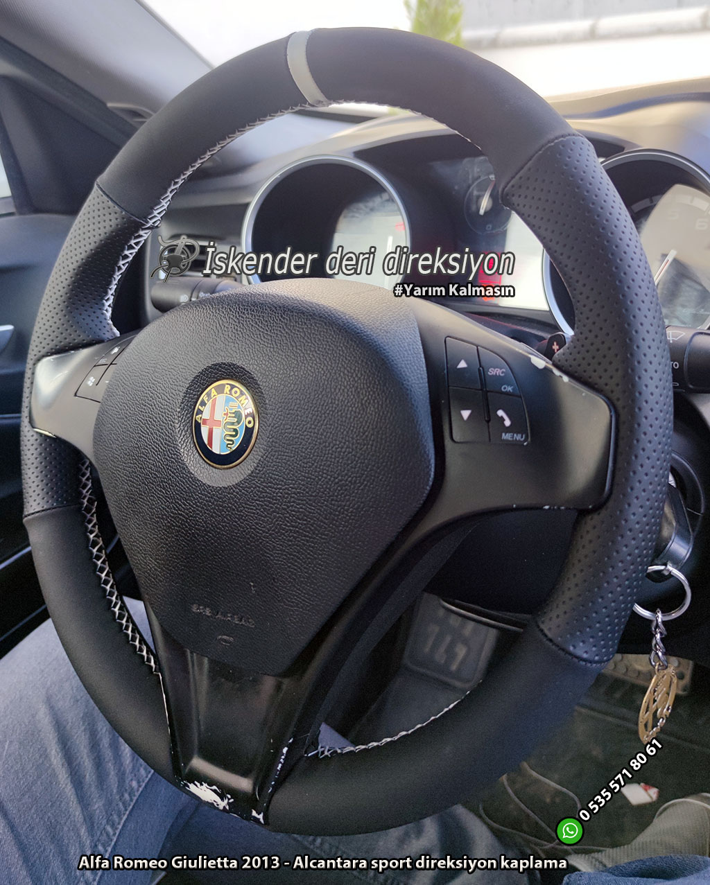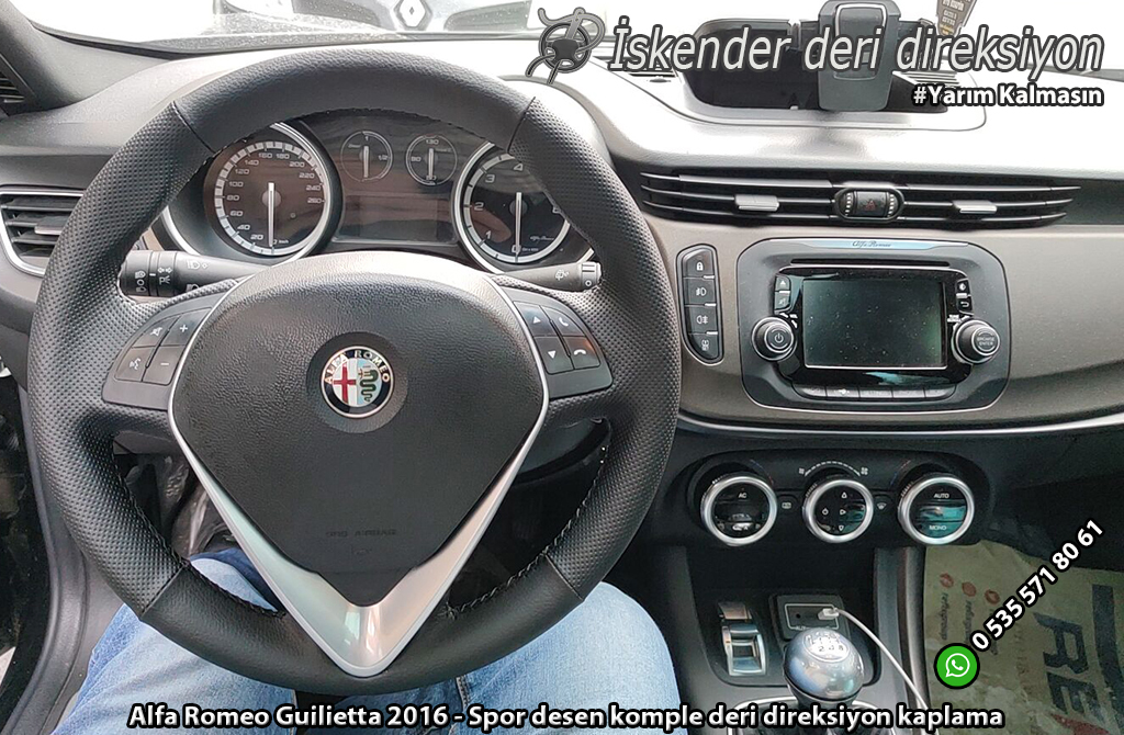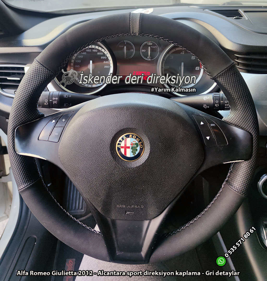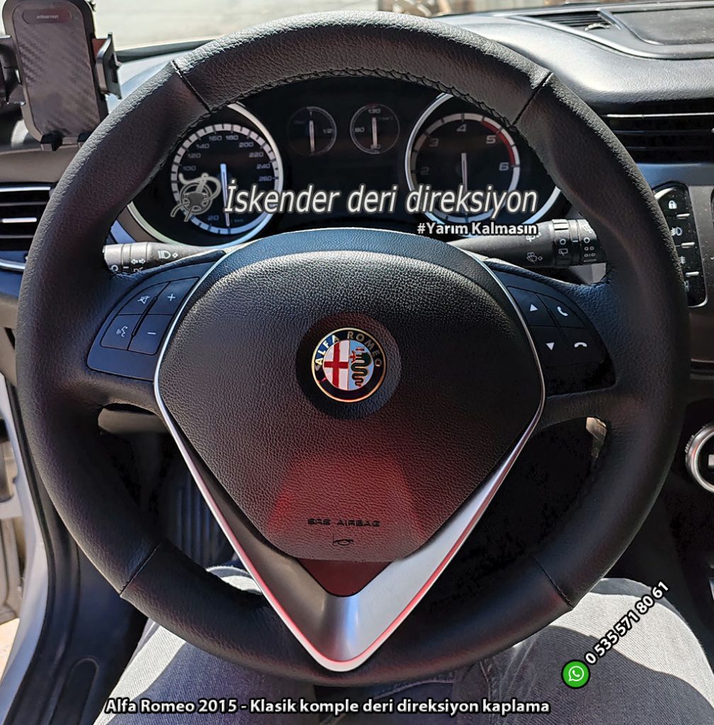 Alfa Romeo Giulietta deri direksiyon kılıfı direksiyonlarını kenarlar kollar dahil kaplayan kılıfımız mevcuttur. Orjinal kalıp araca özel deri direksiyon kılıfı satıyoruz. Whatsapp hattımız üzerinden sipariş verebilirsiniz.